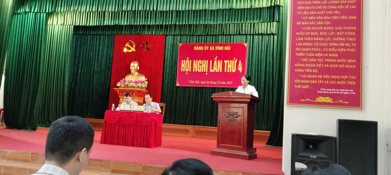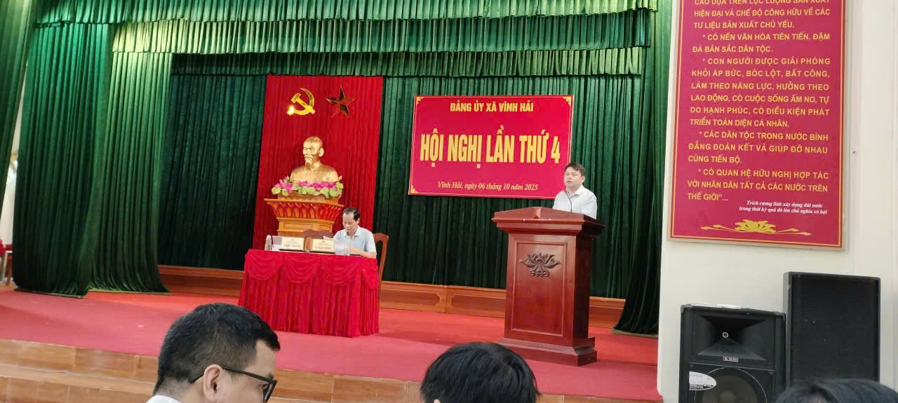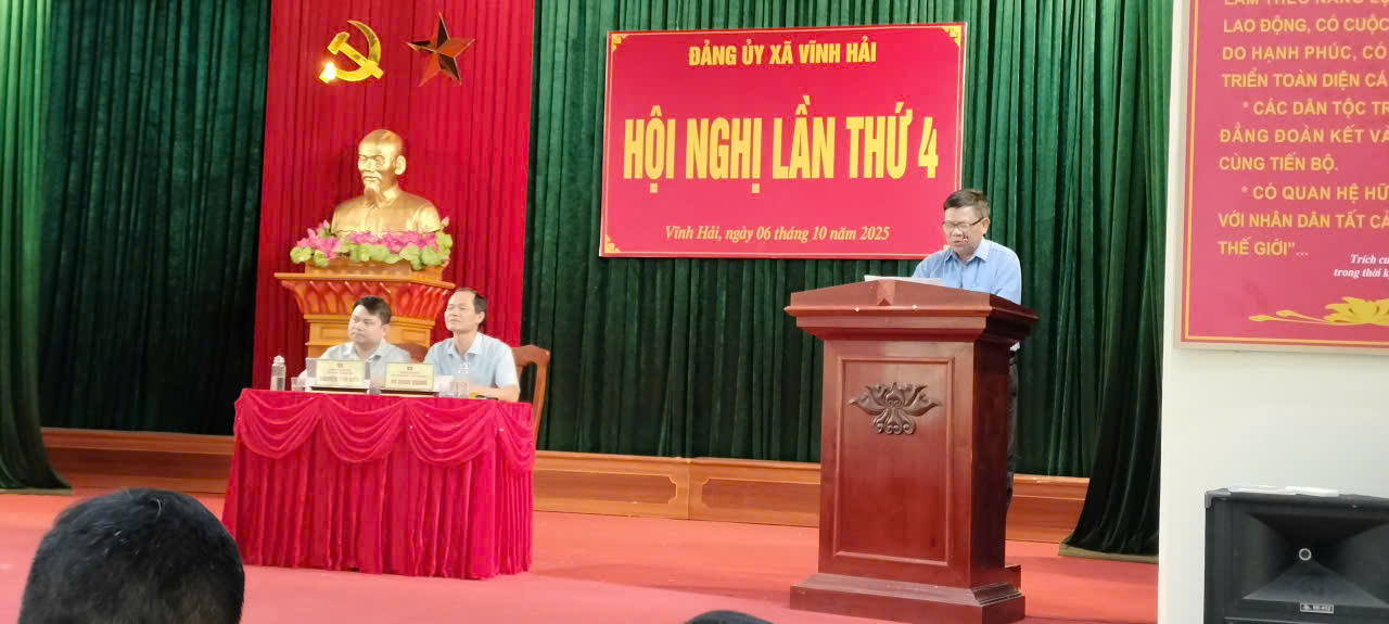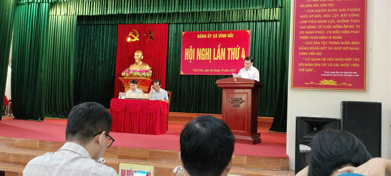 Sáng 06/10/2025 Đảng uỷ xã Vĩnh Hải tổ chức Hội nghị lần thứ 4 nhằm kiểm điểm việc thực hiện nhiệm vụ 9 tháng đầu năm; mục tiêu nhiệm vụ, giải pháp trọng tâm 3 tháng cuối năm 2025. Thông qua một số Quy chế và chương trình hoạt động của đảng uỷ.